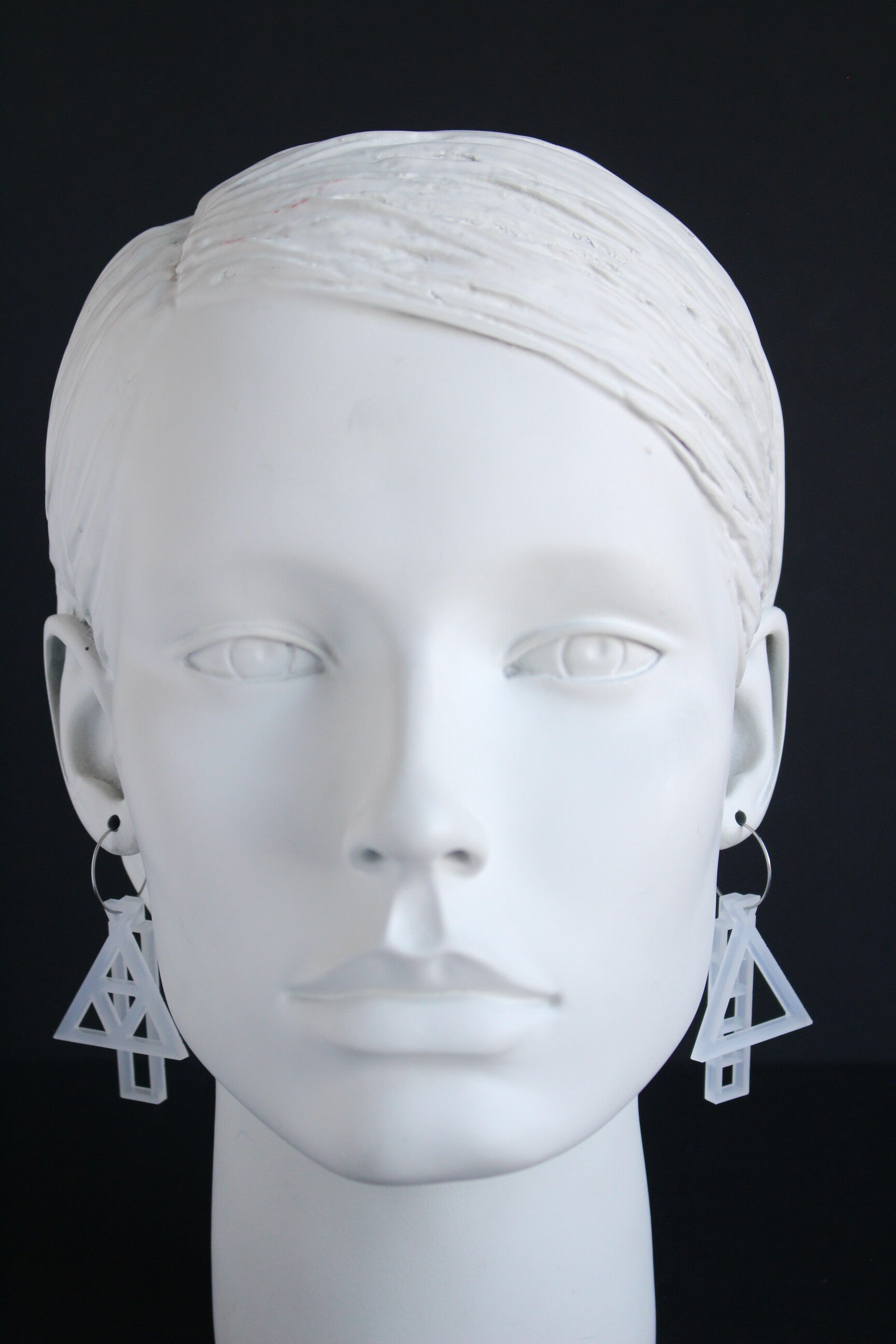 Oorbellen van opaal wit acrylaat aan oorringen van hypoallergeen rvs.