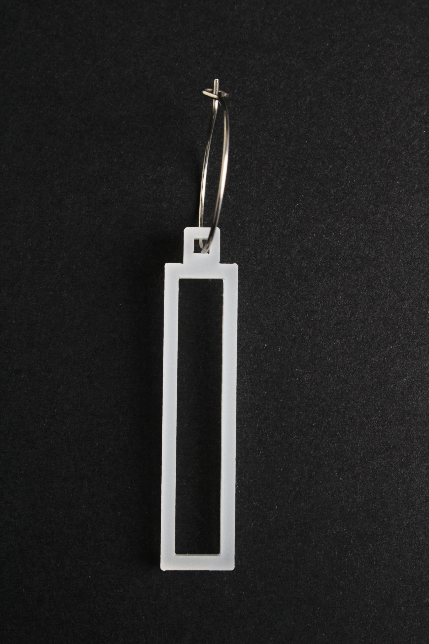 Oorbellen van opaal wit en grijs acrylaat aan oorringen van hypoallergeen rvs.